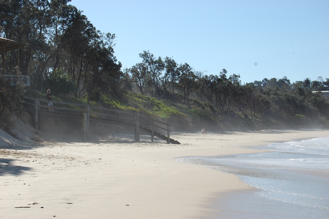 Da pot do današnje končne destinacije ne bi bila preveč dolgočasna, smo se približno na polovici ustavili v bližini naselja Coffs Harbour, natančneje na plaži Diggers Beach. Po Lonely planetu sodeč gre za popularno destinacijo, česar se izven turistične sezone ni dalo opaziti, a ne glede na temperature nismo spregledali naravnih lepot, ki jih lokacija nudi. Velika peščena plaža privlači predvsem surferje, katerih tudi danes ni manjkalo. Oblečeni v neopren so se čudili našemu pogumnemu namakanju v hladnem Pacifiku in otroško entuzijastičnemu igranju z valovi.