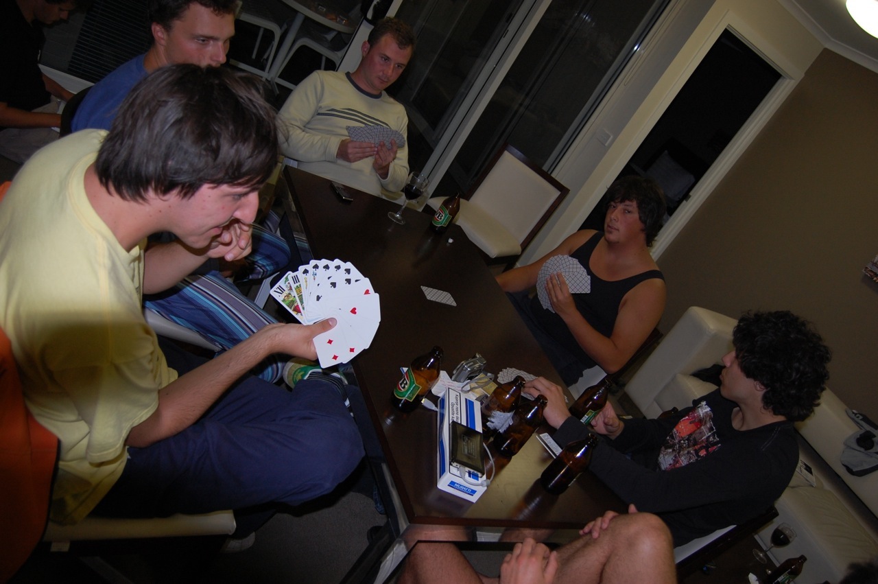 Bolj lačni kot premraženi smo nabavili manjkajoče sestavine za kočerjo, se vrnili v apartmaje in uspešno zavihteli kuhalnice. Prenajedanje je imelo za posledico spokojen zaključek večera ob kozarčku avstralskega vina in kartah za tarok, zaradi načrtovanih premikov pa smo zgledno zaspali že okrog polnoči.